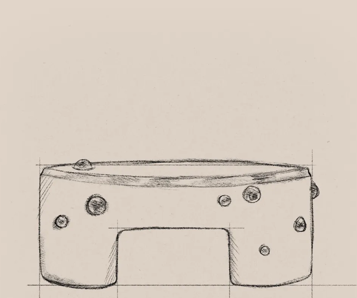 Designed as a centerpiece object with monolithic presence and artisanal finish.