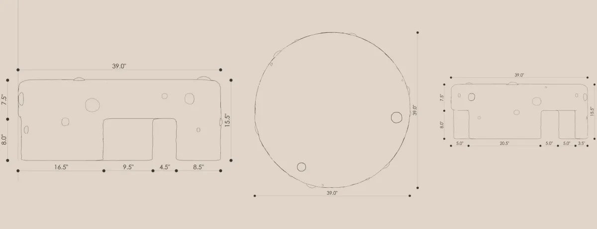 The Africa Coffee Table echoes the same ancestral rhythm as its larger counterpart. The circular form and punctuated surface suggest both ritual and permanence, a piece that gathers energy inward and holds space for memory.