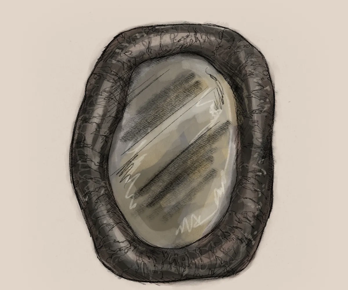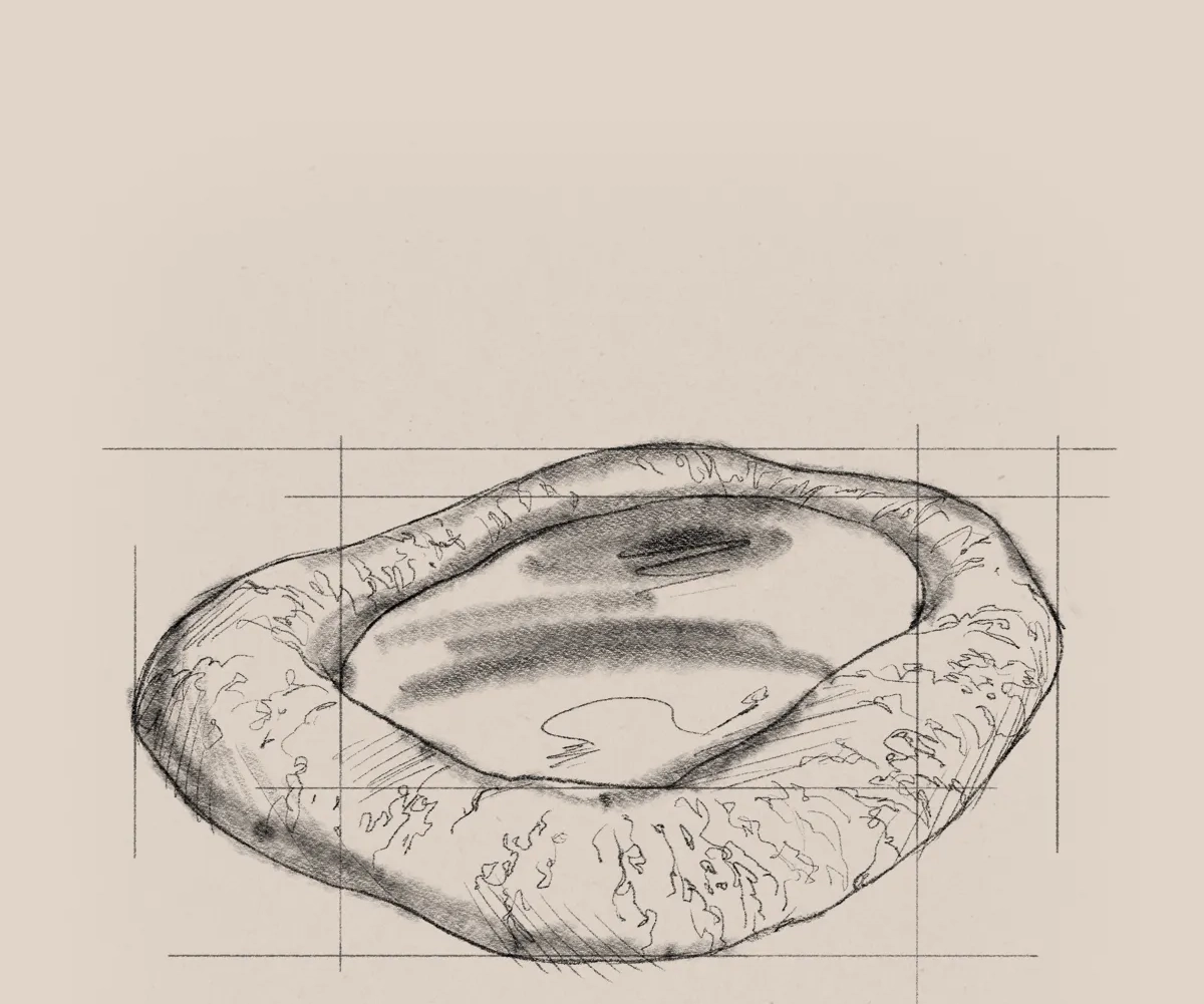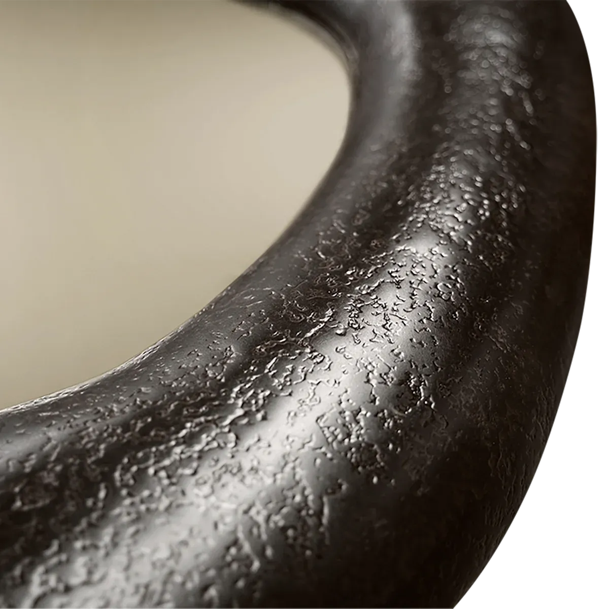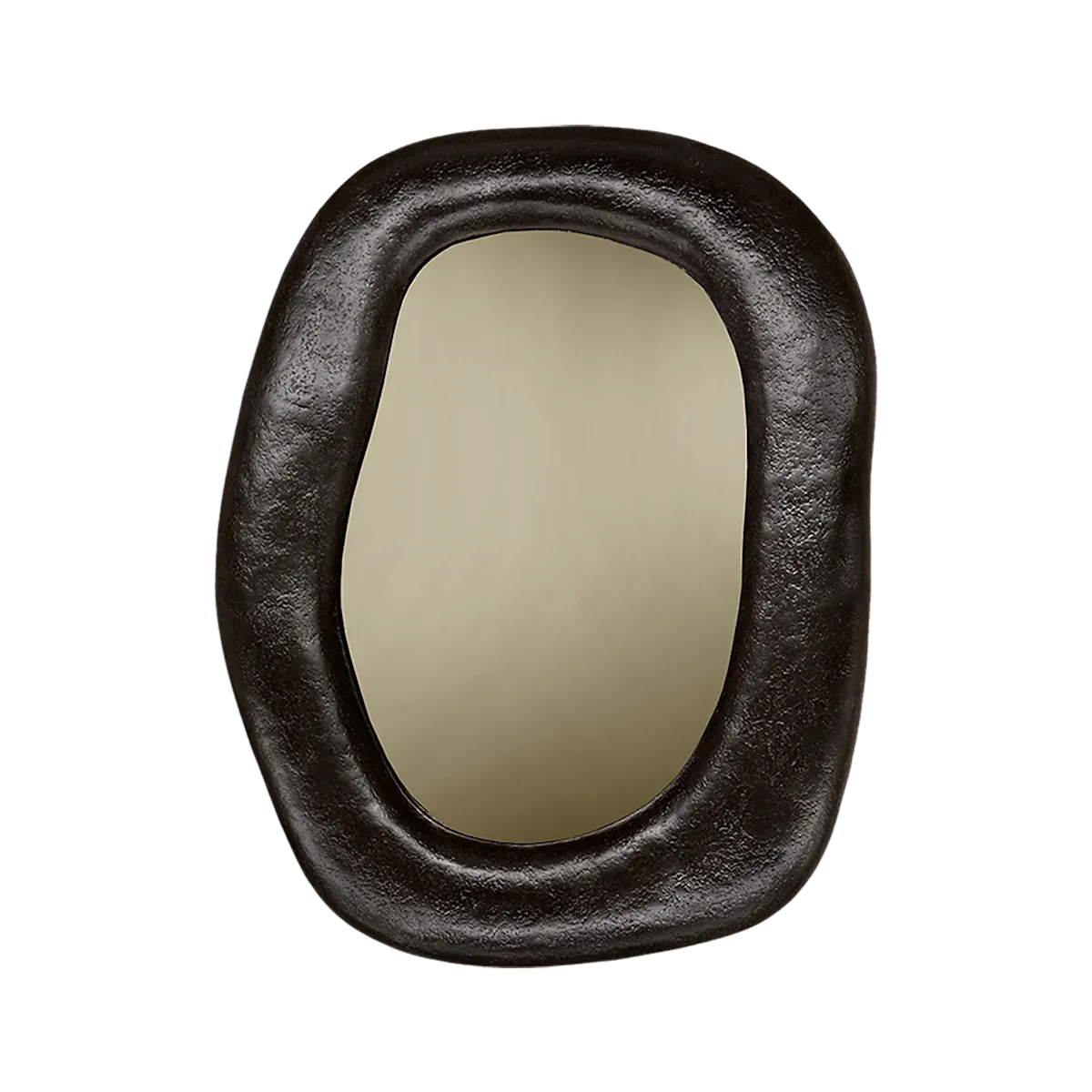 The Origins Mirror appears as if excavated, not made. Its thick, rounded frame swells and dips in irregular waves, cradling the mirrored surface within. Each one is cast, polished and patinated by hand. Never identical, always elemental.
