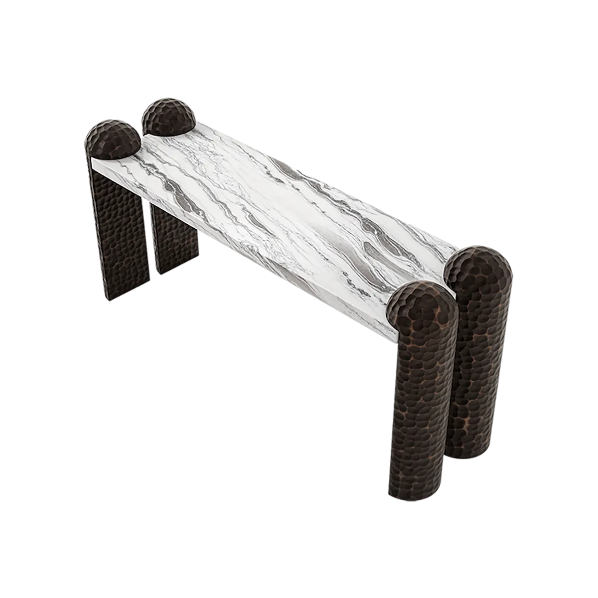 Console table with solid wood hand-carved legs and a rectangular top.