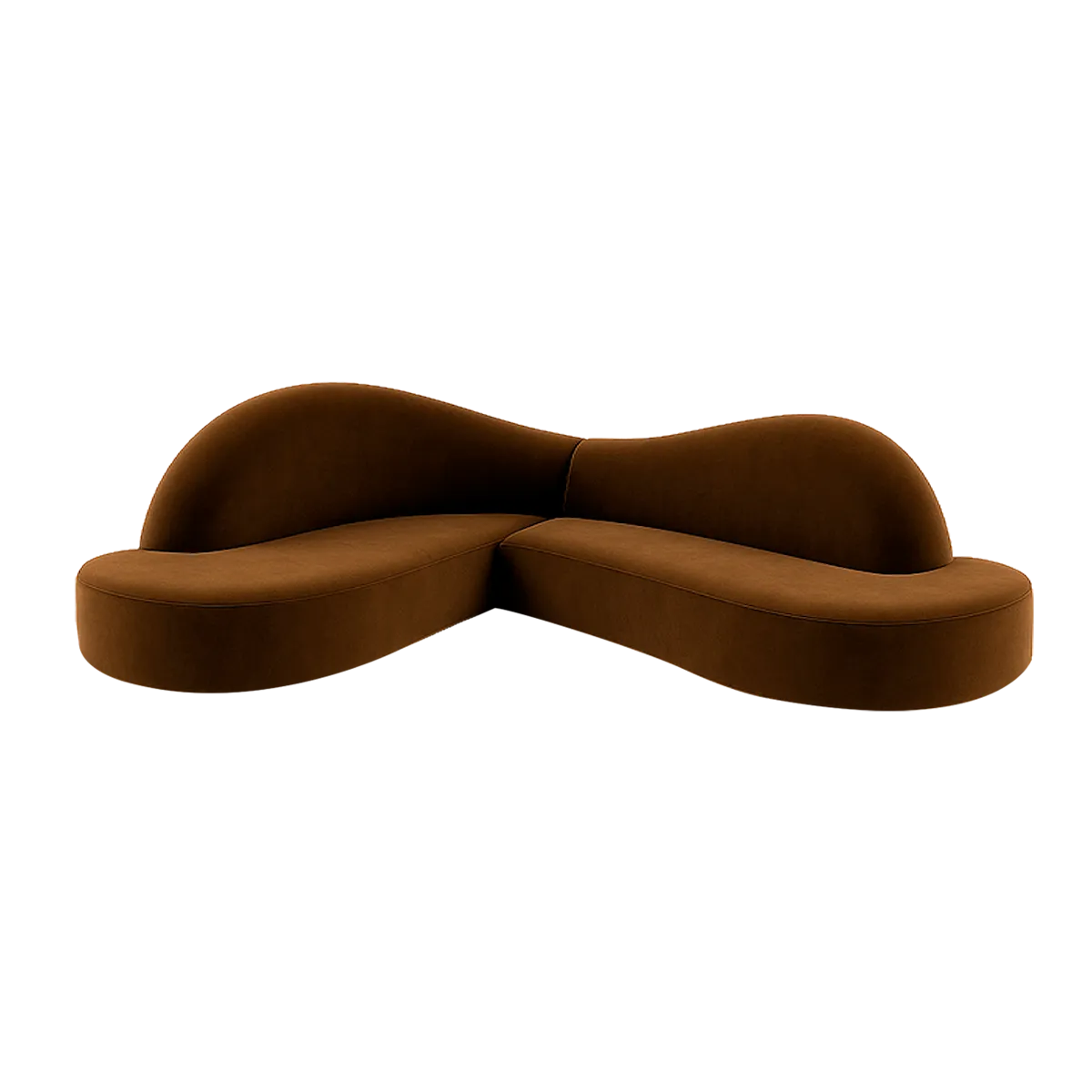 The Illusion Sofa is shaped by smooth exaggeration, a sweeping volume that appears inflated, but sits grounded in balance. With its generous curves and seating, the piece plays with perception, evoking softness and suspension. An Architectural object, disguised as comfort.