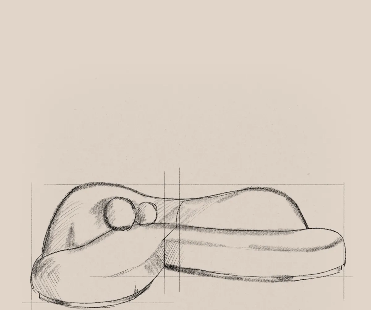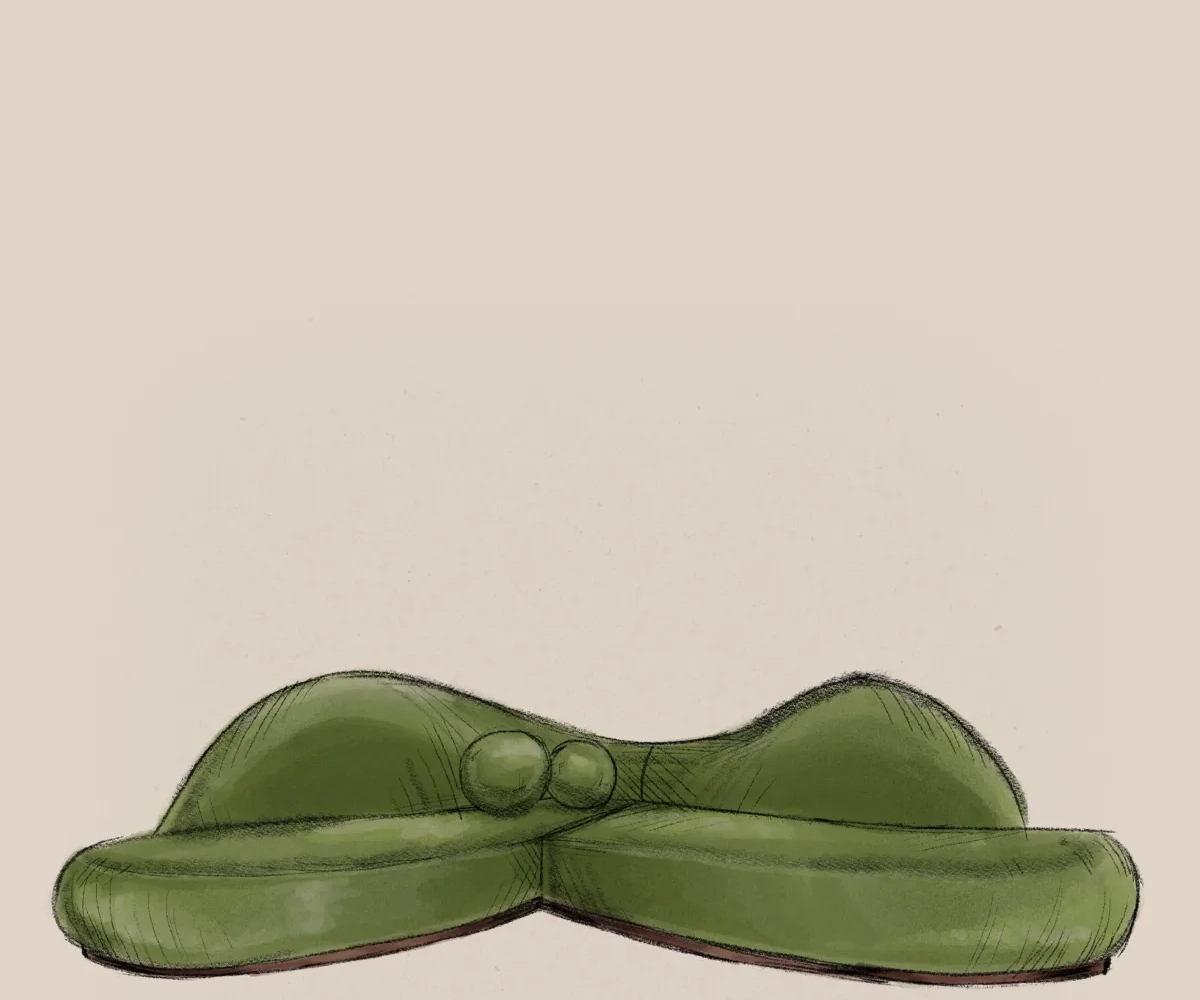 The Illusion Sofa is shaped by smooth exaggeration, a sweeping volume that appears inflated, but sits grounded in balance. With its generous curves and seating, the piece plays with perception, evoking softness and suspension. An Architectural object, disguised as comfort.
