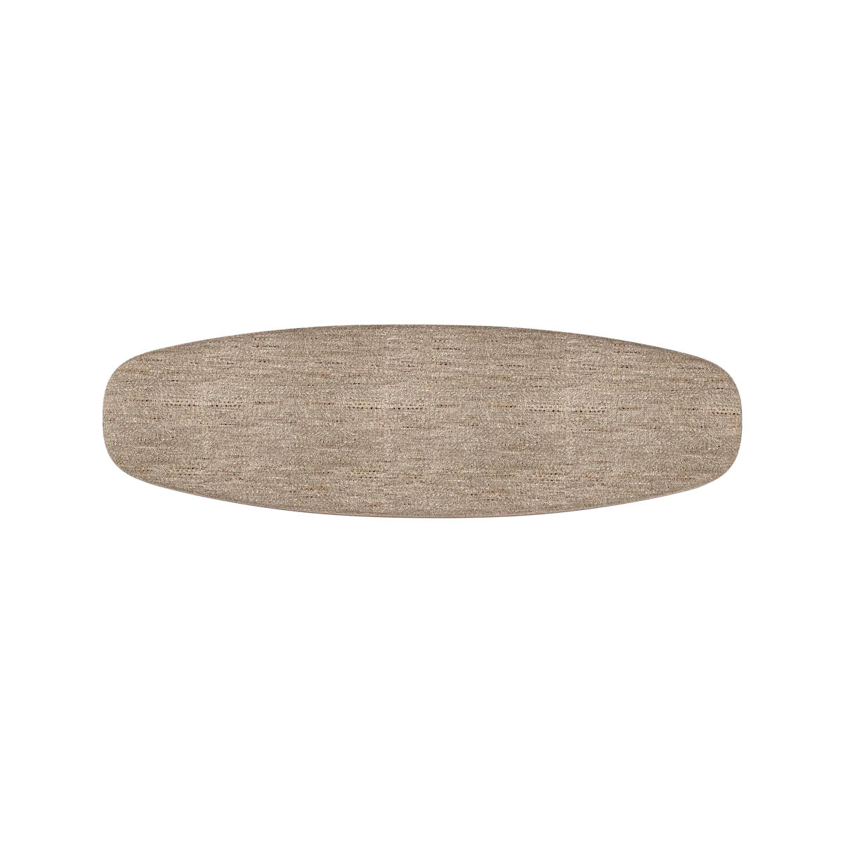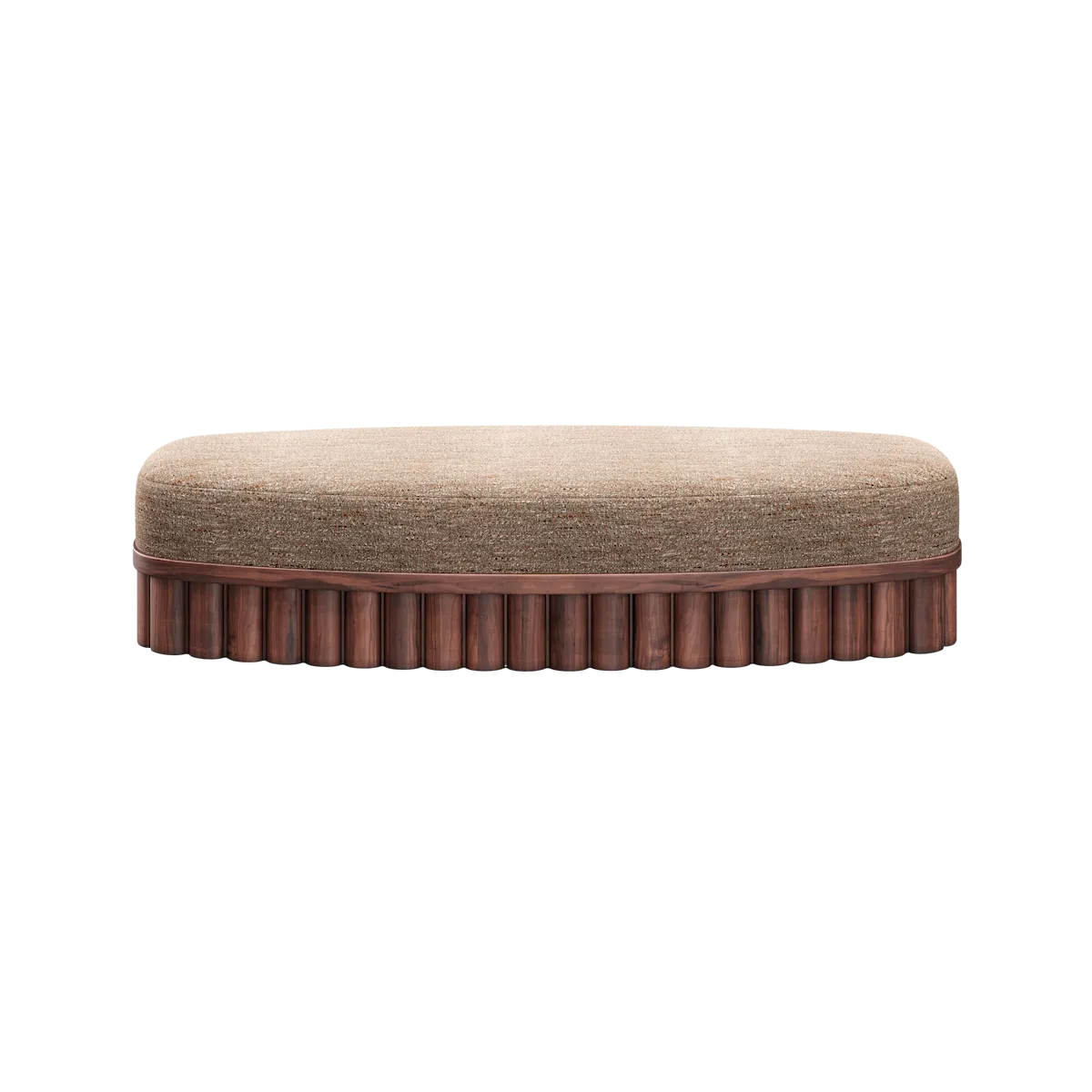 With its elongated silhouette and rounded edges, the Ripple Bench stretches softly across a space. The carved base, composed of repeated vertical elements, anchors the piece with a sense of quiet rhythm. Above, the upholstered cushion offers tactile contrast, a smooth landing atop sculptural foundation.